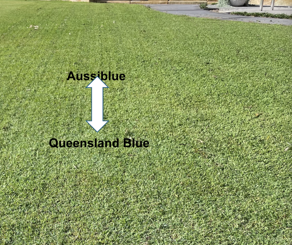 By the end of a week in perfect growth conditions, Aussiblue would noticeably outgrow Queensland Blue. Aussiblue is denser in growth too and holds out weeds very well.